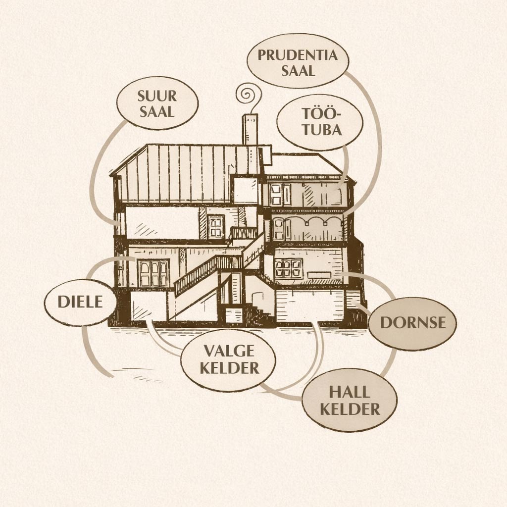 Hoones paiknevad järgmised ajaloolised ruumid: