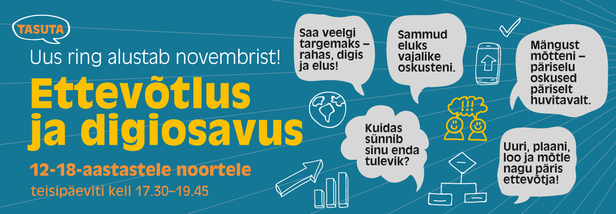 Novembris alustav uus huviring Ettevõtlus ja digiosavus ootab noori vanuses 12–18 eluaastat .